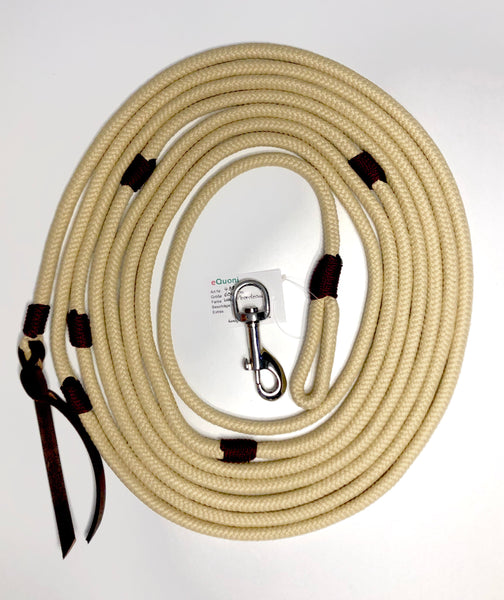 - Bessere Orientierung durch optionale Markierungen am Seil, die gleichzeitig zu mehr Griffigkeit führen und ein Durchrutschen durch die Hände erschweren. Zudem erkennt man leicht, in welchem Radius das Pferd mit einen herum läuft.